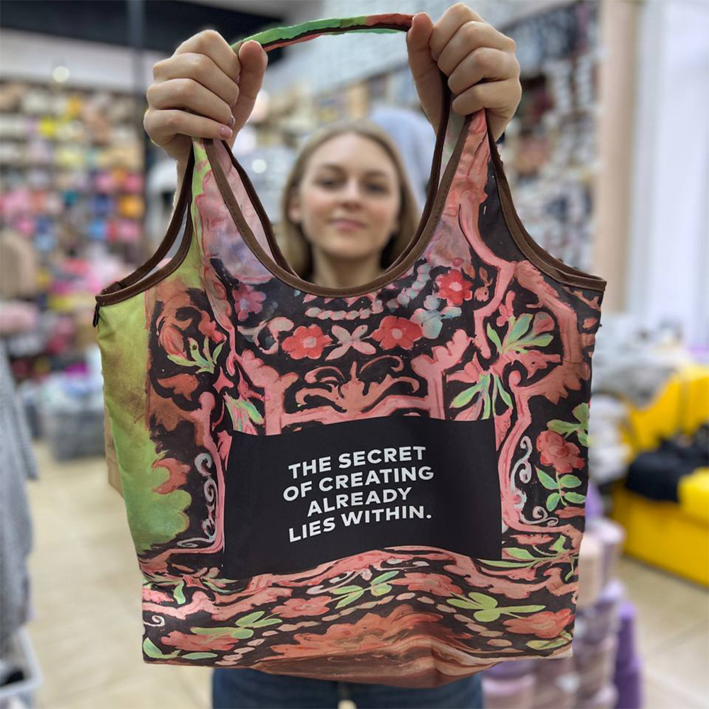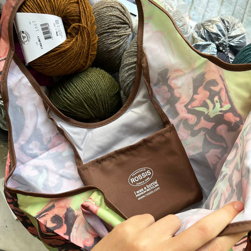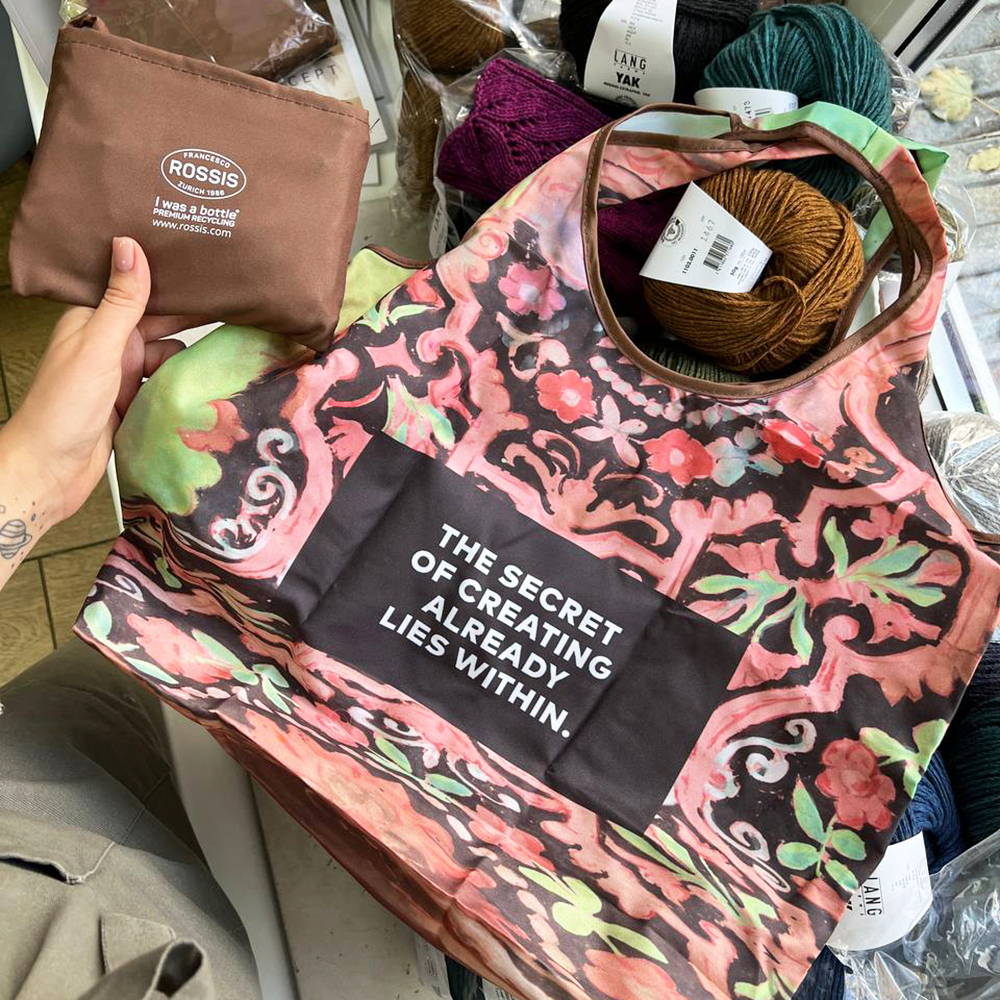 Эко-сумка из переработанного пластика - удобная и вместительная. Всегда можно положить любимое вязание Wooladdicts с собой. Туда прекрасно поместятся журнал, спицы и мотки.