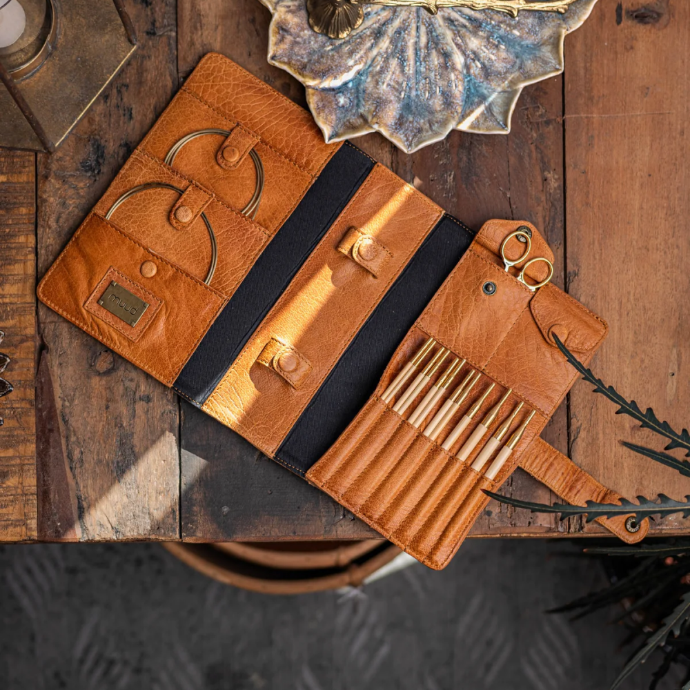 Carita — это красивый кожаный аксессуар от muud, который будет трепетно оберегать все ваши инструменты для вязания. Органайзер изготовлен из высококачественной кожи и незаменим для тех, кто хочет, чтобы их вязальные инструменты всегда были в порядке.
