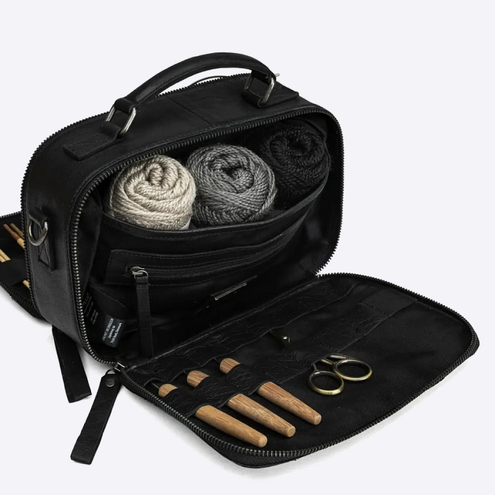 Lilly от Muud изготовлена вручную из натуральной кожи, имеет продуманный функционал для хранения ваших инструментов. Создана для того, чтобы держать в порядке все необходимое для вязания, когда вы в пути. В сложенном состоянии имеет вид классической сумки - кроссбоди.
