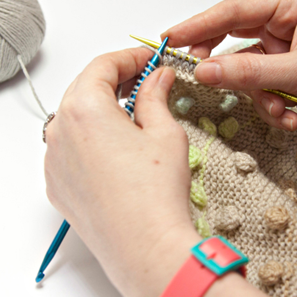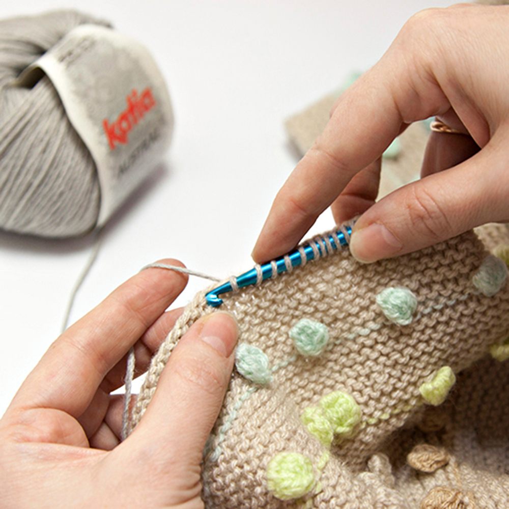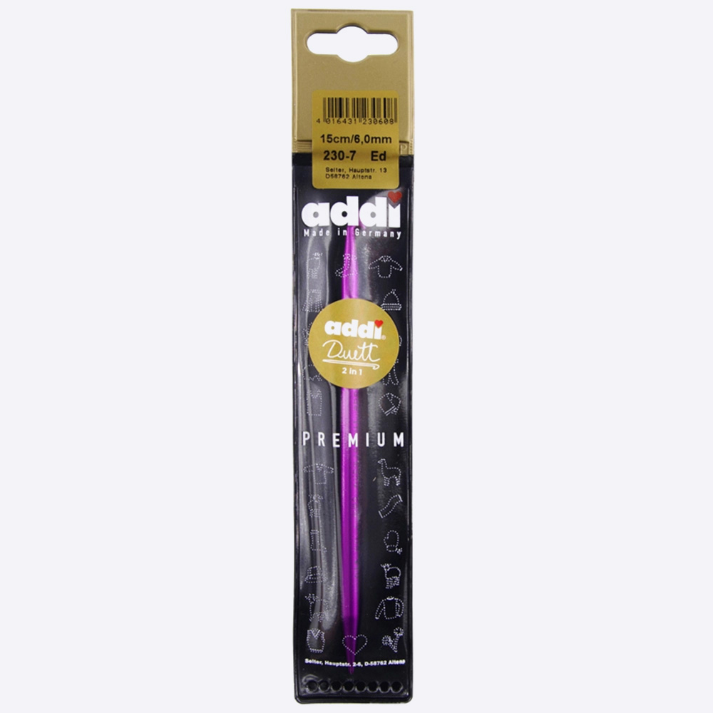 Цветные крючки с поверхностью из анодированного алюминия addiDuett имеют длину 15 см и практичное тонкое острие на конце. При помощи этой дополнительной функции можно набирать петли и сразу их провязывать.