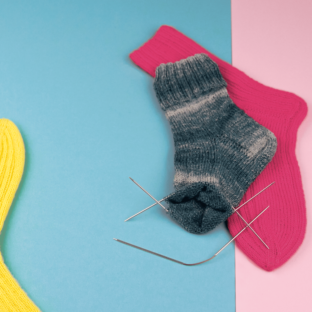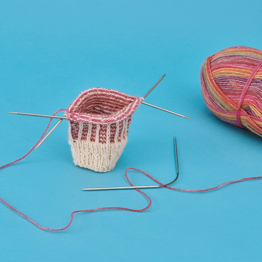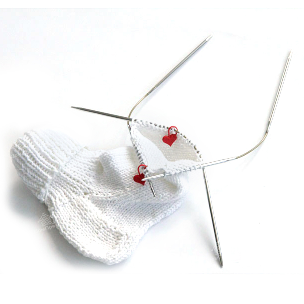 Набор из 3-х гнущихся чулочных спиц позволит без труда вывязывать модели самого маленького размера. Петли распределяются по двум спицам и провязываются при помощи третьей спицы - то есть в ряду надо менять только две спицы. Петли располагаются на гибком соединении, благодаря чему они не соскальзывают со спиц. Гибкая средняя часть позволяет удобно держать спицы в руках. Два вида спиц BASIC и LACE с заостренными кончиками, подходят для любой пряжи. Можно использовать в качестве вспомогательной спицы для вывязывания кос. Разумеется, «Сделано в Германии»!