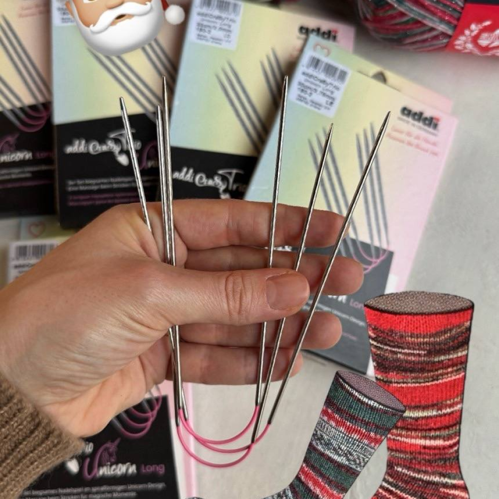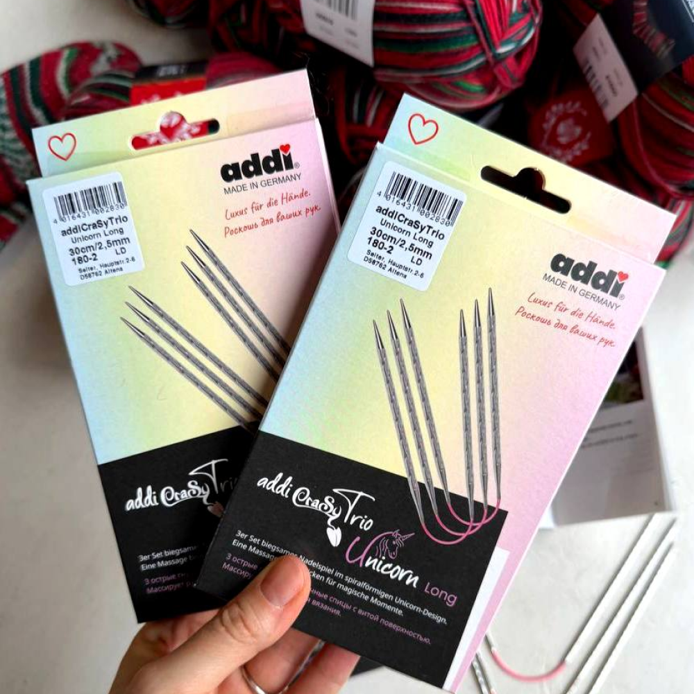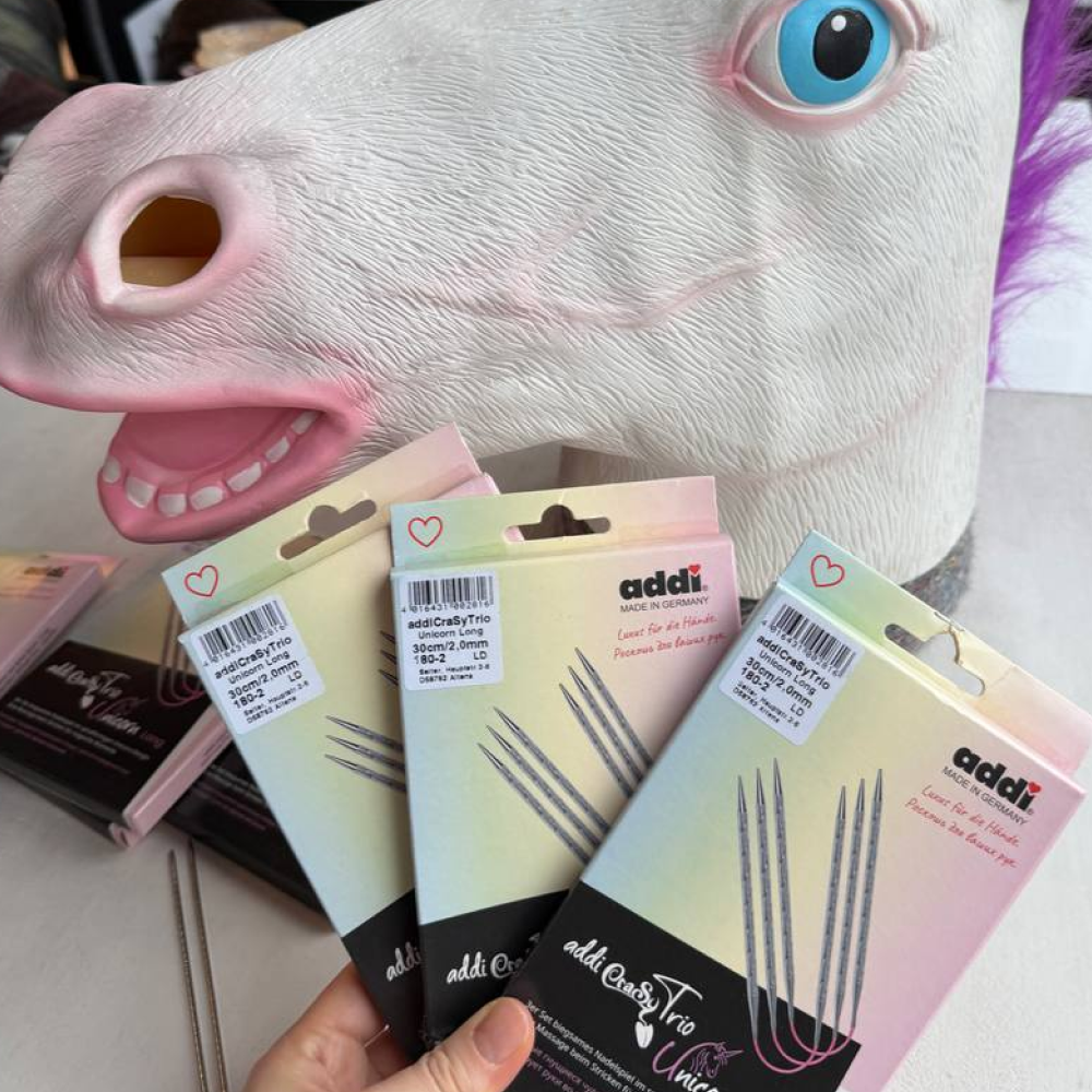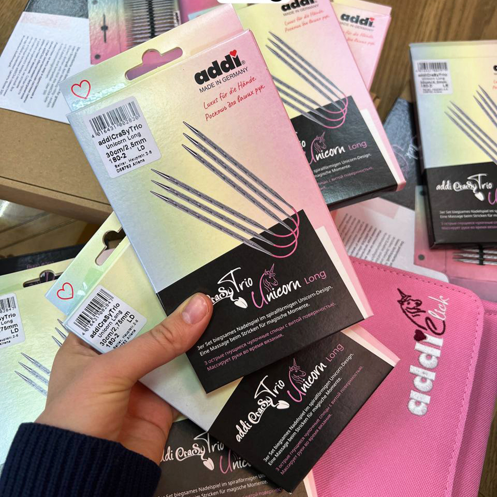 В семействе addiUnicorn пополнение: набор из трех спиц addiCraSyTrio с розовым гибким шнуром.