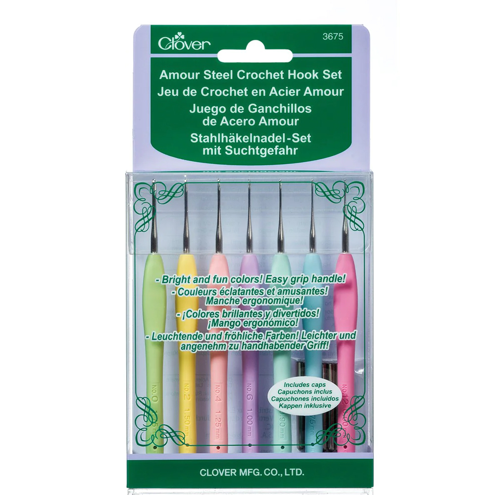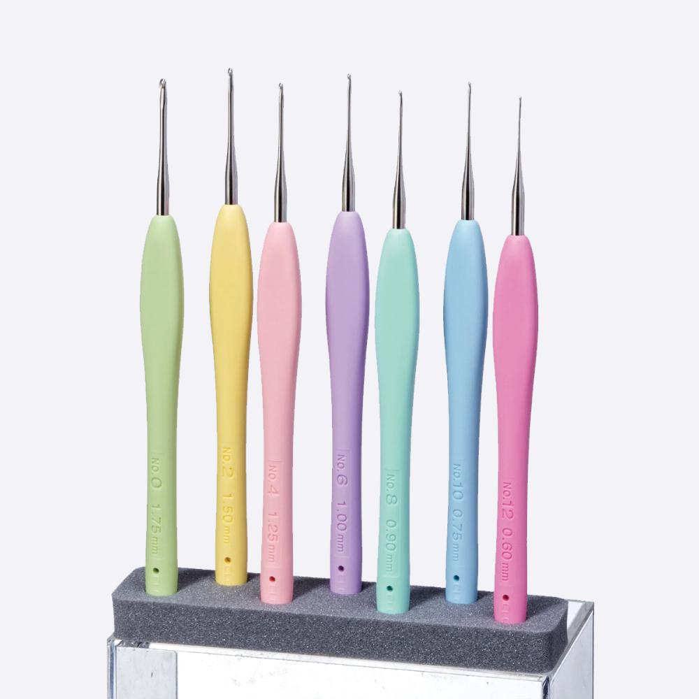 Крючки имеют эргономичные ручки ярких разных цветов, цвета также являются маркировкой для быстрого определения размера.