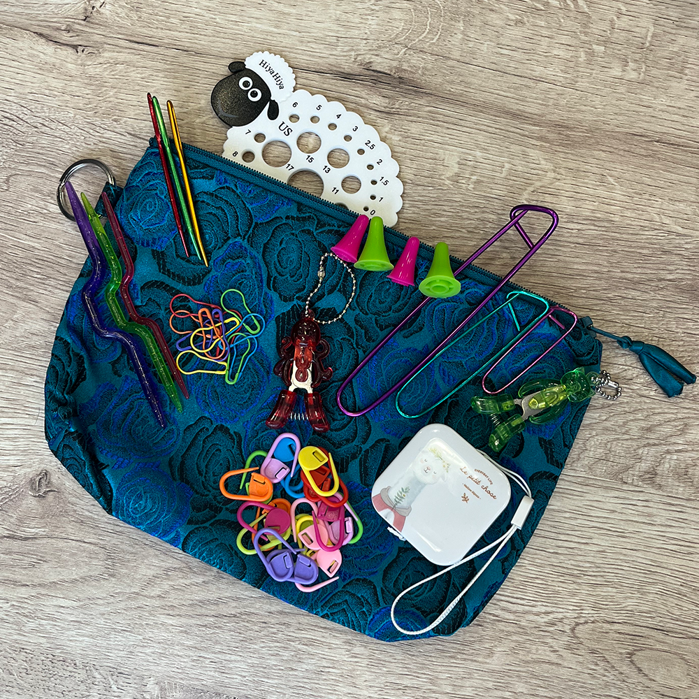 Набор аксессуаров для вязания HiyaHiya Accessory Set А — это идеальный комплект аксессуаров для вязальщиц любого уровня. В него входит множество полезных инструментов, которые упрощают процесс вязания и делают его еще более комфортным. Все аксессуары упакованы в фирменную проектную сумку из китайской парчи HiyaHiya, которая не только удобна для хранения инструментов, но и достаточно вместительна, чтобы разместить один моток пряжи и другие мелочи.