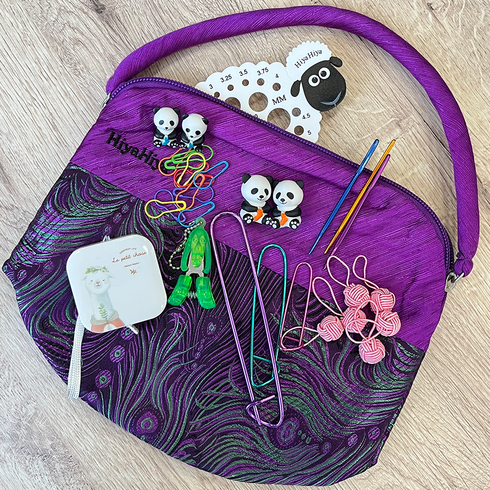 Набор аксессуаров для вязания HiyaHiya Accessory Set D — это идеальный комплект аксессуаров для вязальщиц любого уровня. В него входит множество полезных инструментов, которые упрощают процесс вязания и делают его еще более комфортным. Все аксессуары упакованы в фирменную проектную сумку из китайской парчи HiyaHiya, которая не только удобна для хранения инструментов, но и достаточно вместительна, чтобы разместить один моток пряжи и другие мелочи.
