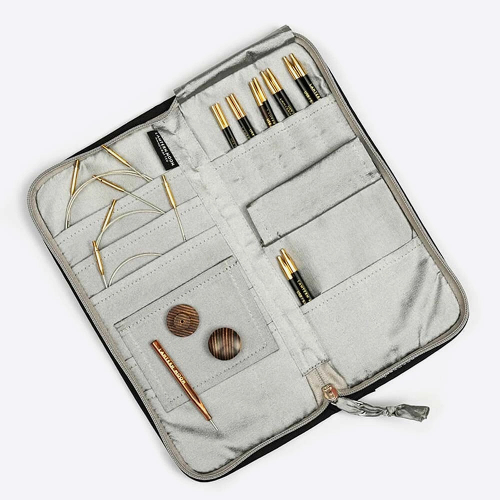 Этот мягкий футляр представляет собой удобное и безопасное решение для хранения круговых спиц. Он оборудован 16 внутренними карманами, предназначенными для безопасного размещения нескольких круговых спиц разных размеров. Это позволяет легко упорядочивать и хранить ваш инструментарий.
