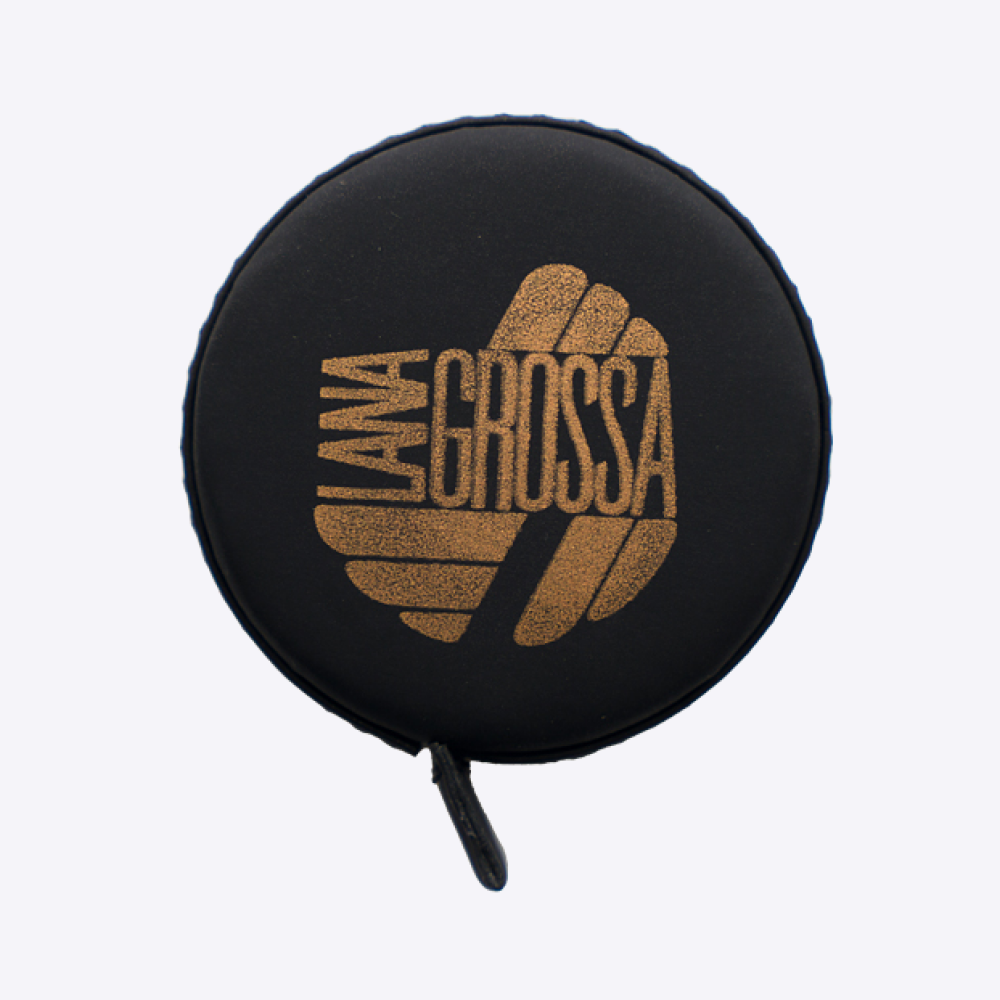 Круглая сантиметр-рулетка из эко кожи чёрного цвета