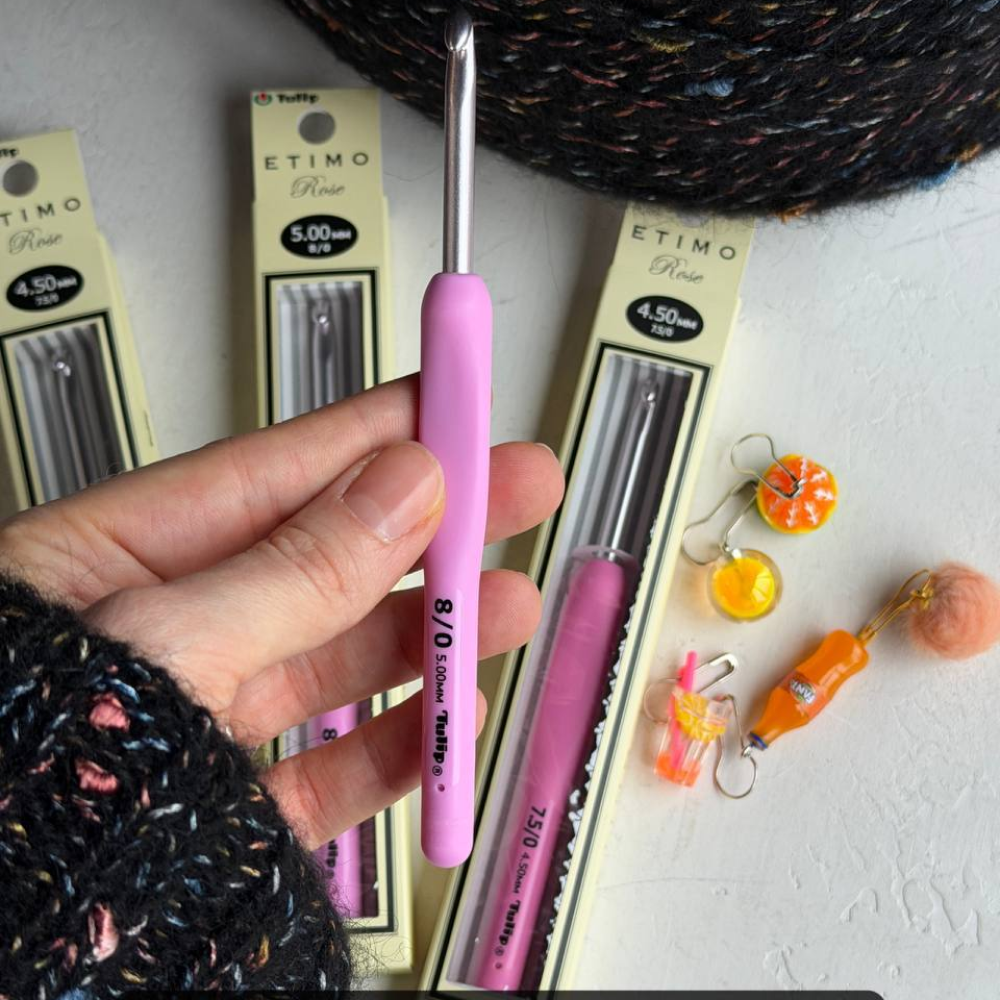 Высококачественный крючок ETIMO Tulip имеет прорезиненную ручку и оснащен гладким крючком, позволяющий легко зацепить и протянуть пряжу.