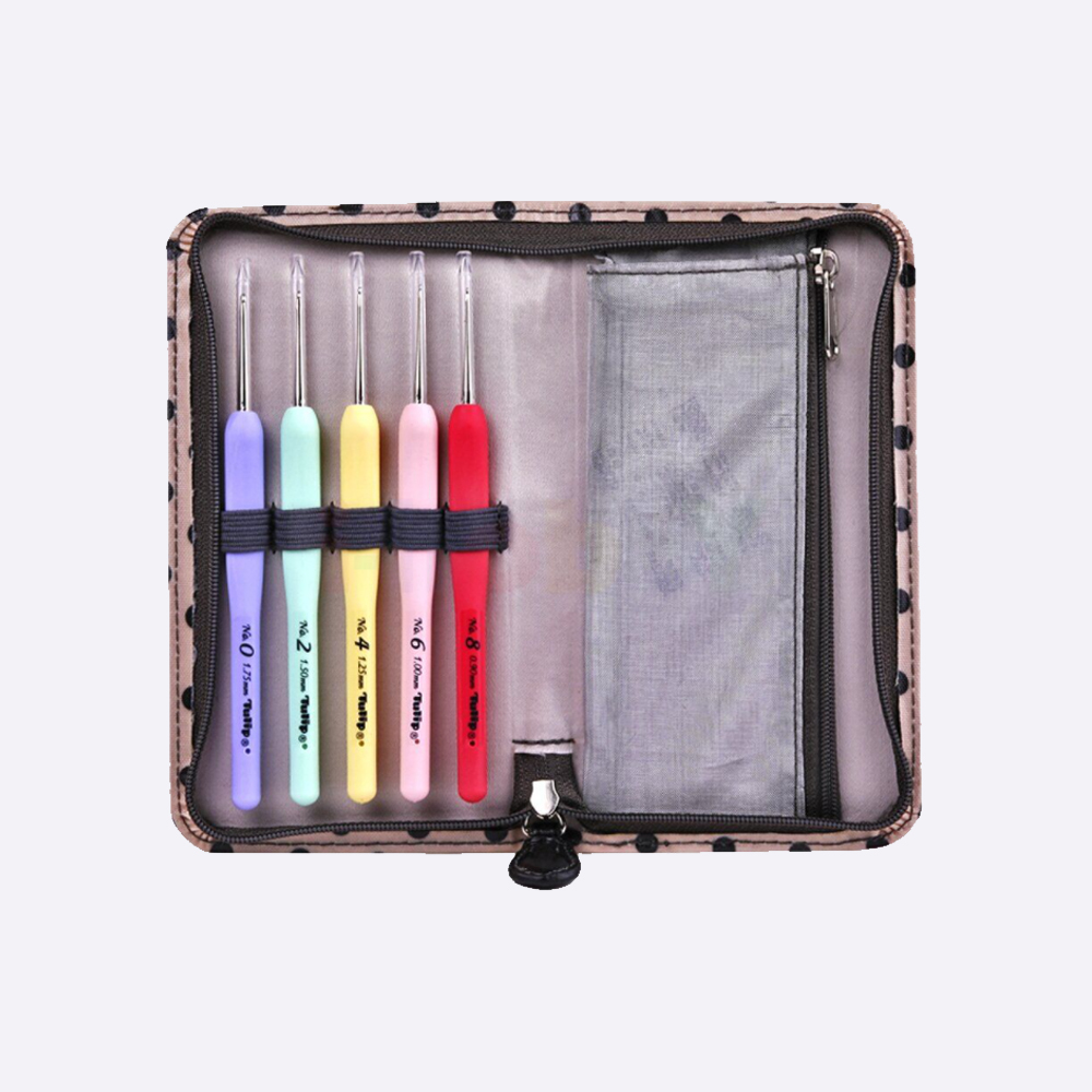 Набор содержит 5 вязальных крючков Sucre в размерах: 1.75 мм, 1.5 мм, 1.25 мм, 1.0 мм, 0.9 мм