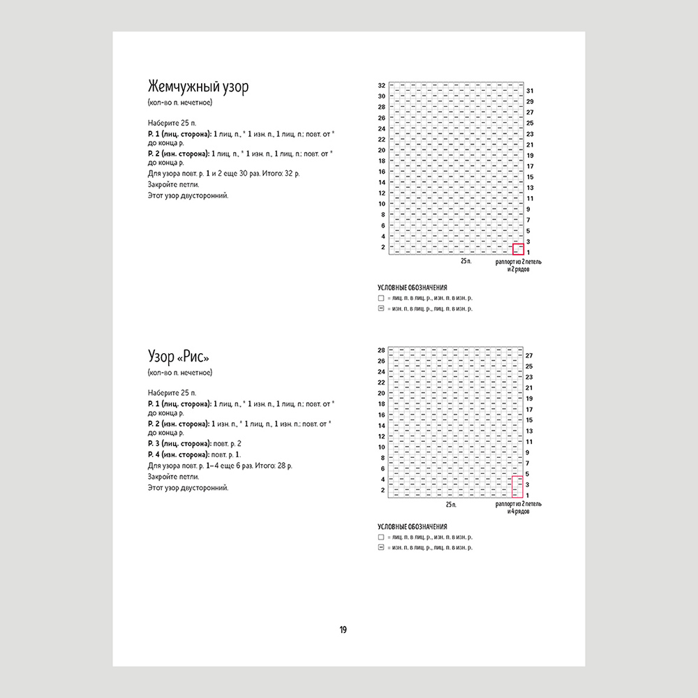 Узоры из лицевых и изнаночных петель имеют много достоинств: они могут быть двусторонними, а значит идеально подходят для шарфов, открытых кардиганов и покрывал. Эти узоры имеют плотную, тяжелую фактуру, что великолепно подойдет для верхней одежды, так как сделает изделие толще и теплее. Узоры лежат ровно, края не закручиваются, полотну требуется минимальная финальная обработка.