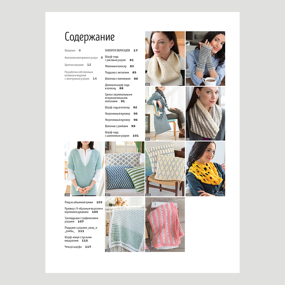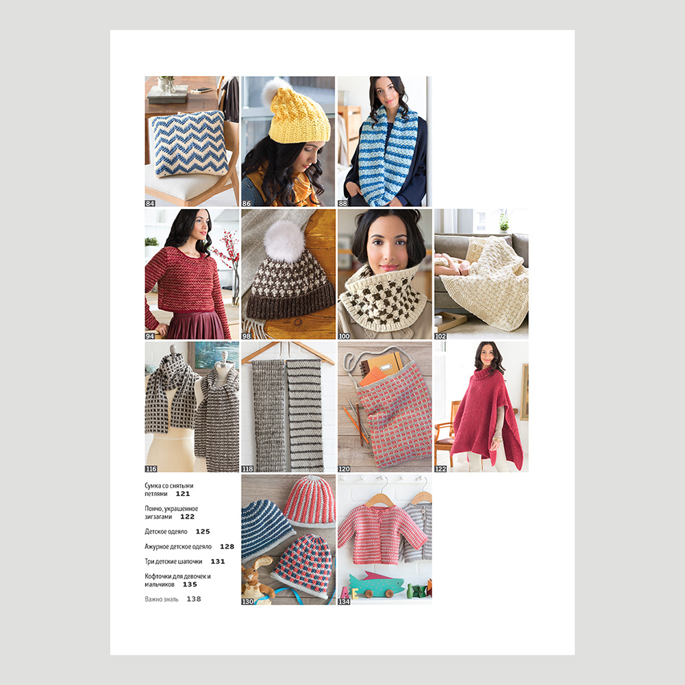 Шапочки и шарфы, шали и пуловеры, подушки и одеяла – разнообразие проектов приятно удивит любую вязальщицу.