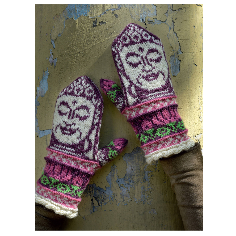 Варежки с ликом Будды и с садовыми розами, с затейливыми буквами и симпатичными жирафами, с очаровательными котятками и с переходящим узором в виде грозного тигра – вы не устанете удивляться фантазии автора. И, конечно, вам обязательно захочется связать себе такие варежки или носочки как можно скорее.