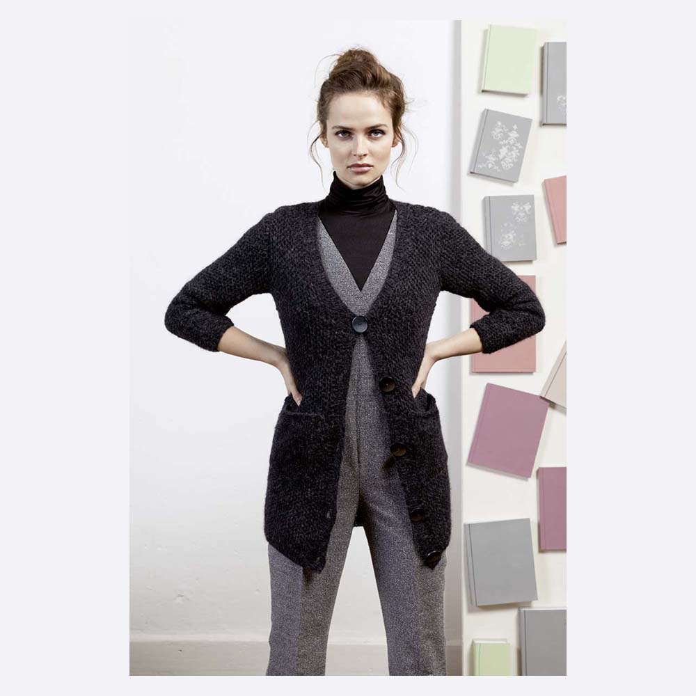Журнал с женскими и мужскими описаниями, осенняя роскошная коллекция. Просто листать журнал, уже захватывает дух. Мужчины оценят 5 отличных моделей: джемпер, два шарфа и два кардигана модных фасонов. И 59 моделей для женщин, такие изделия, продуманные и воплощенные талантливыми дизайнерами будут согревать вас еще в процессе творчества. Современные снуды, пончо, шарфы, шапки, накидки-трансформеры, кардиганы, жакеты, пуловеры, безрукавки, жилеты, свитеры, все они вяжутся из роскошной пряжи от Lang.