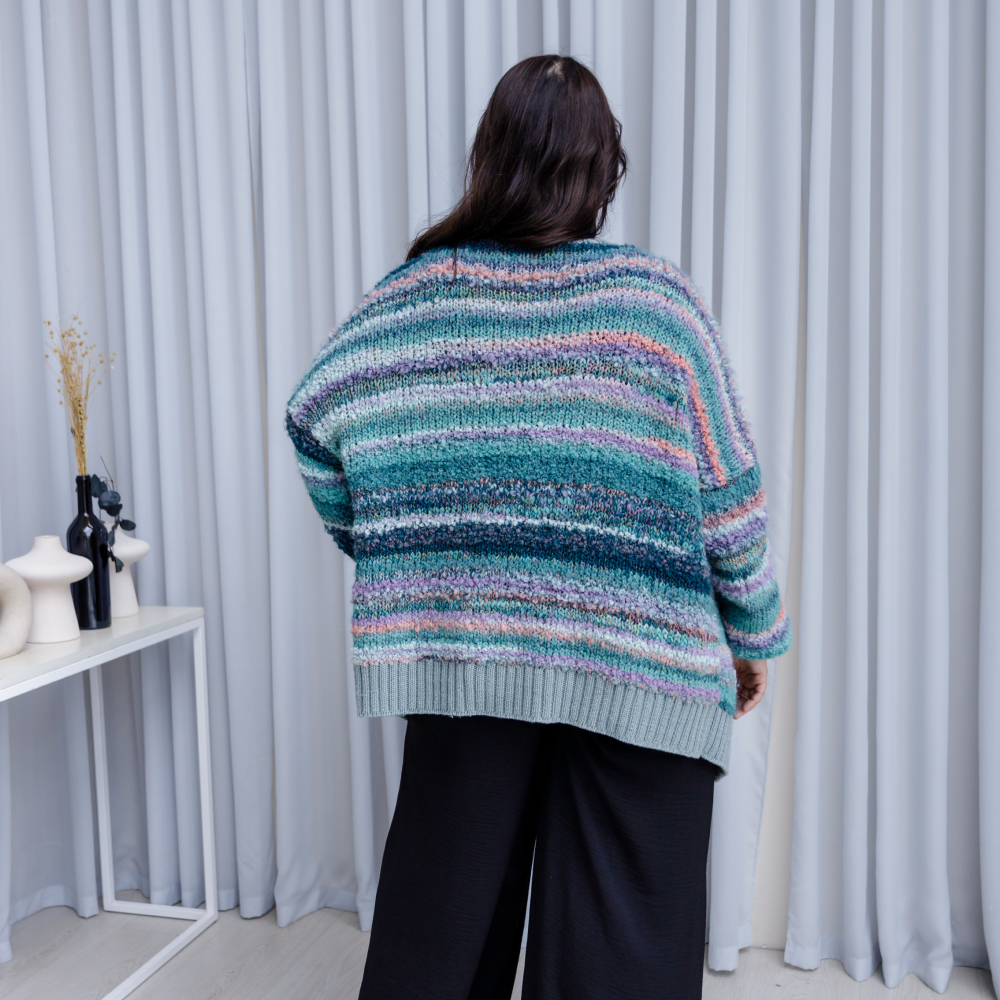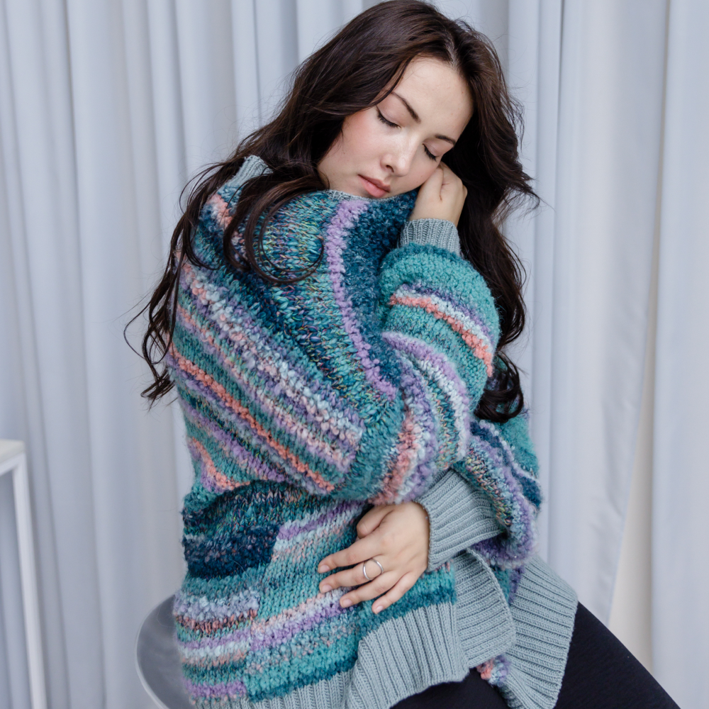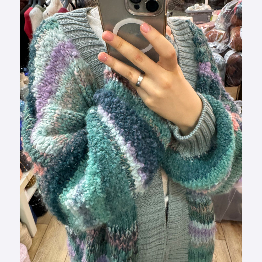 В этой модели сочетаются простота линий и мягкость, яркость нити. Модель оверсайз.