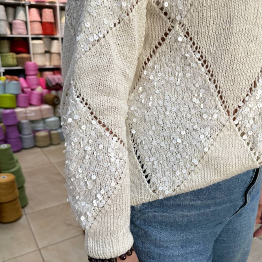 - Бобина Lustrosa Italy (50% хлопок, 50% пайетки, 200 м/100г) - 200/200/300/300 г.