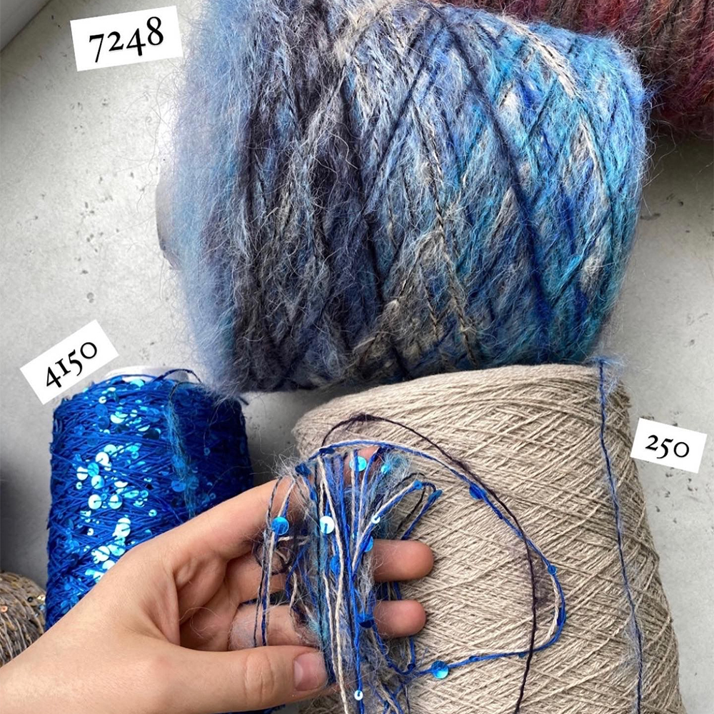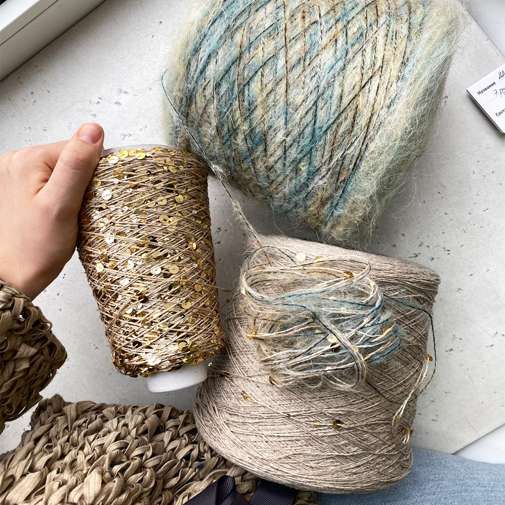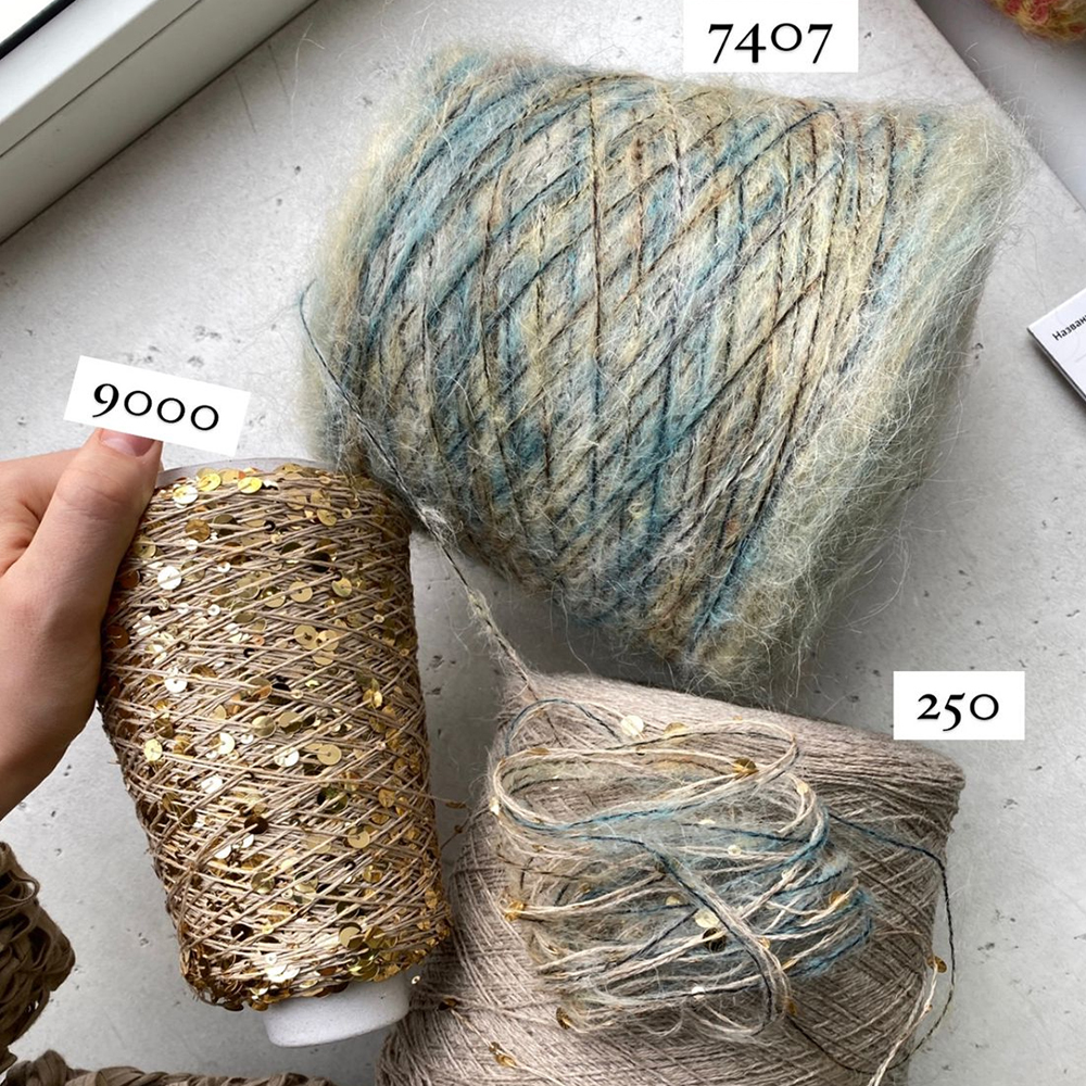 - Бобина Пайетки CARILLON 2000 (50% хлопок, 50% пайетки; 200м/100г) – 200 г;