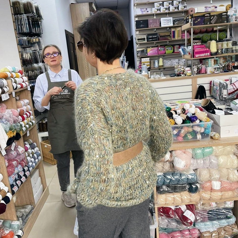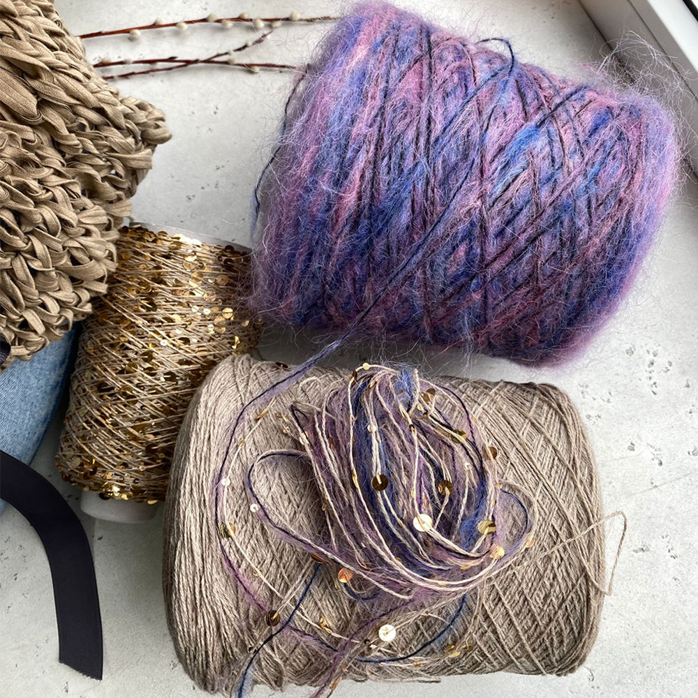 - Бобина мохер MULTIKID NEW (35% кидмохер, 35%ПЭ, 320м/100г) в 2 нити – 400 г;