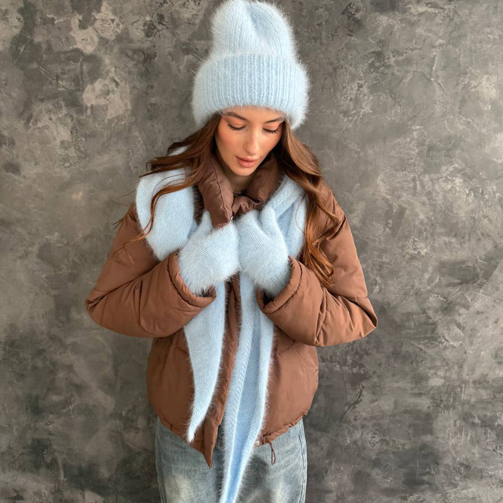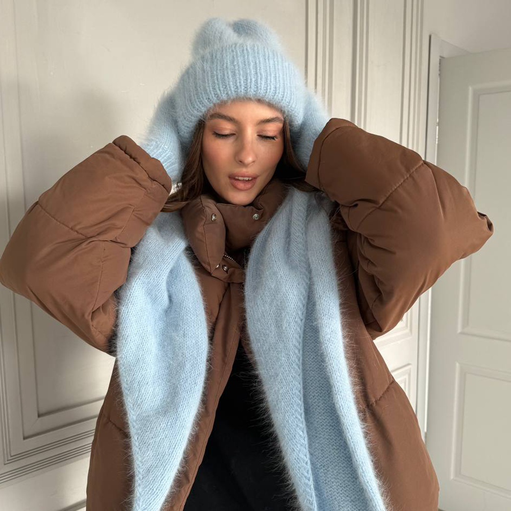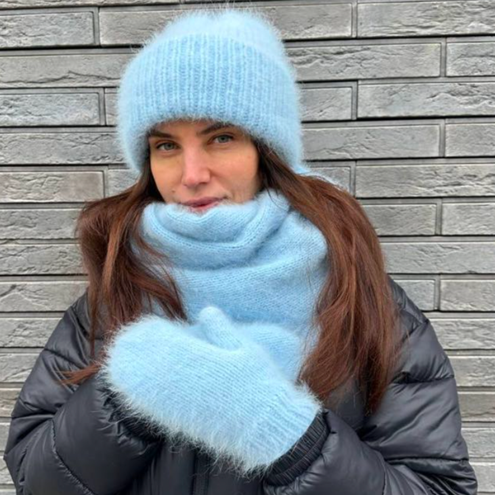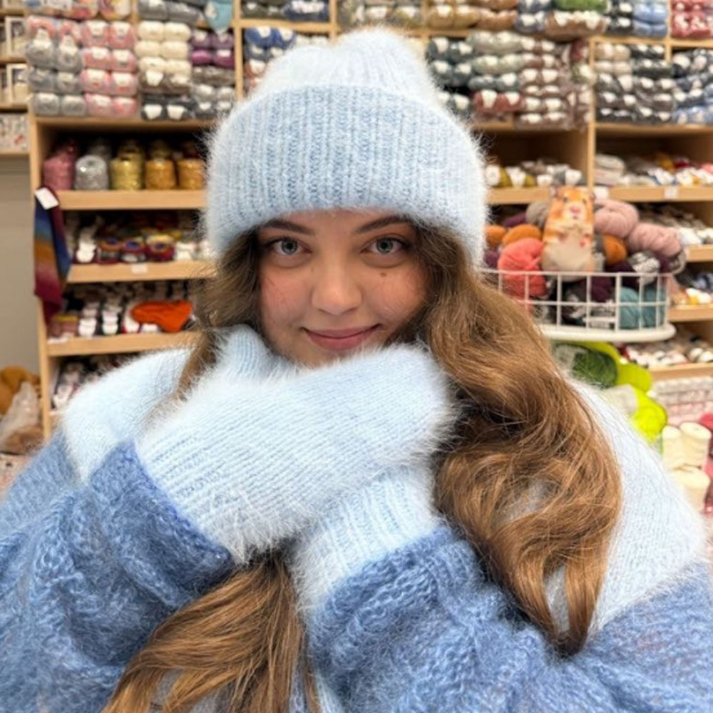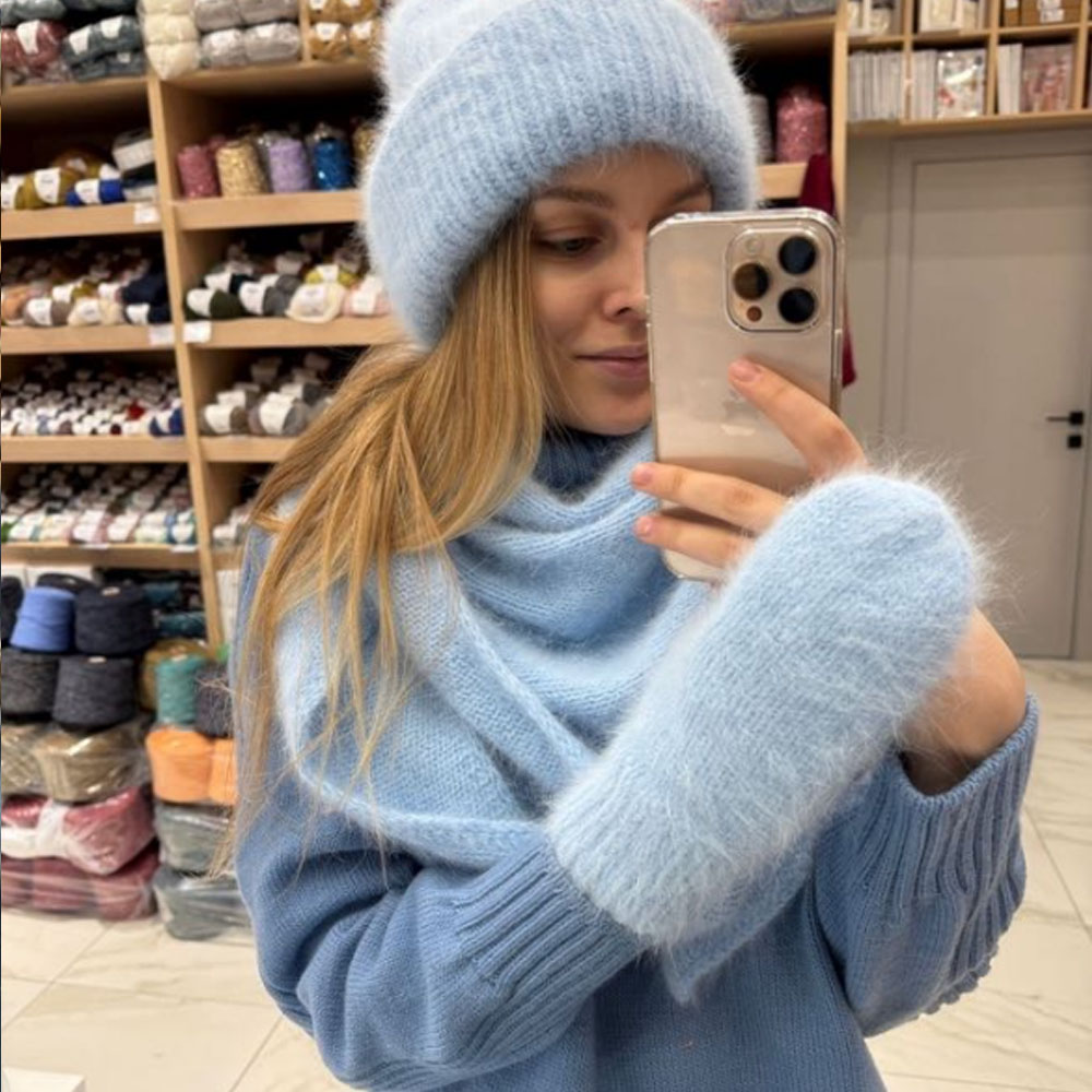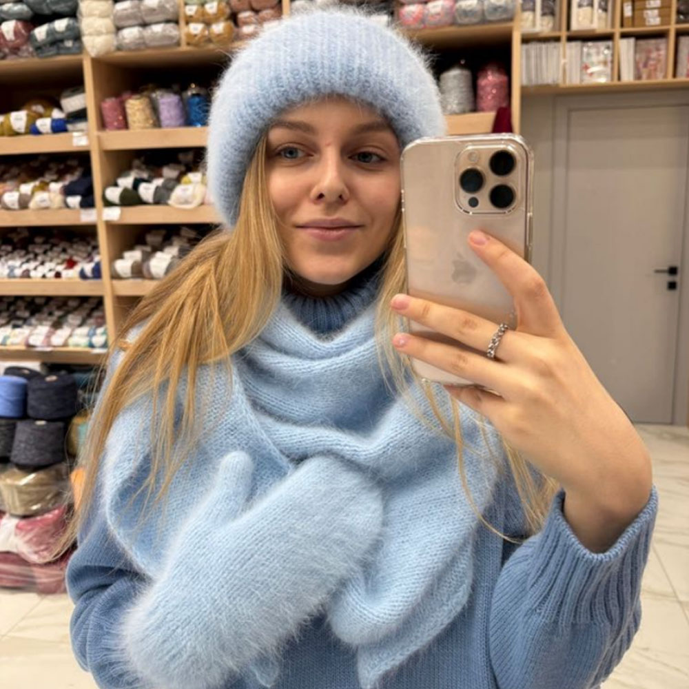 - Бобина Angora70 by Biagioli Modesto (70% ангора, 30% Па, 500 м/100 г) – 400 г- Бобина Ангорa Angora Spiky Tweed (80% ангора, 20% ПА, 450 м/100 г) – 400 г