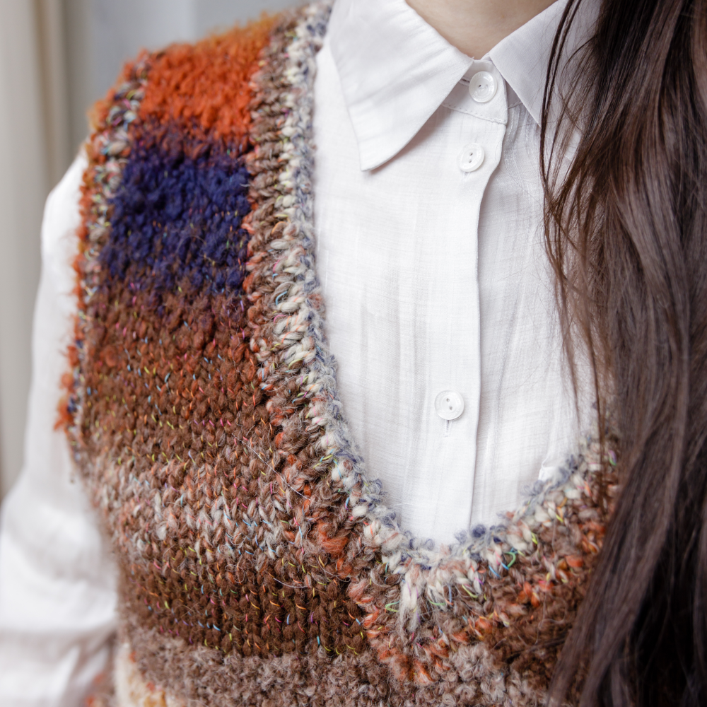 - Края жилета оформлены планками