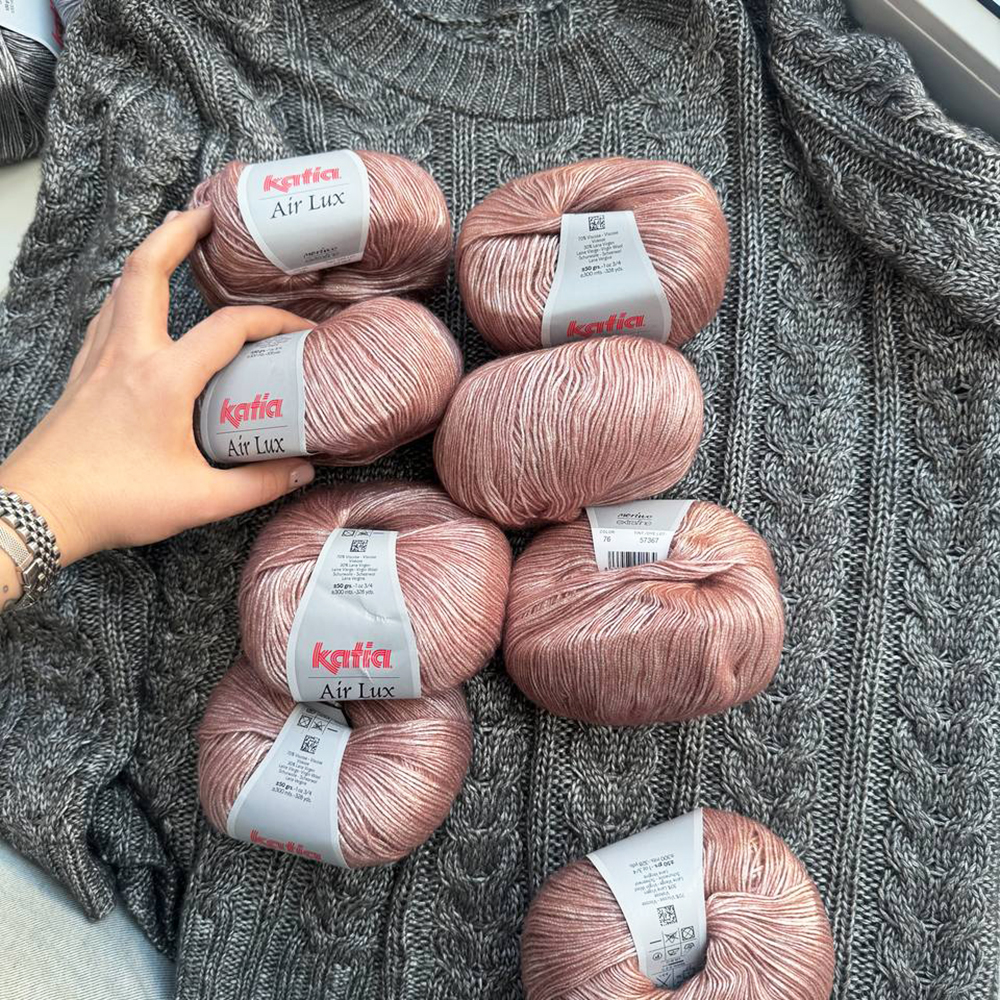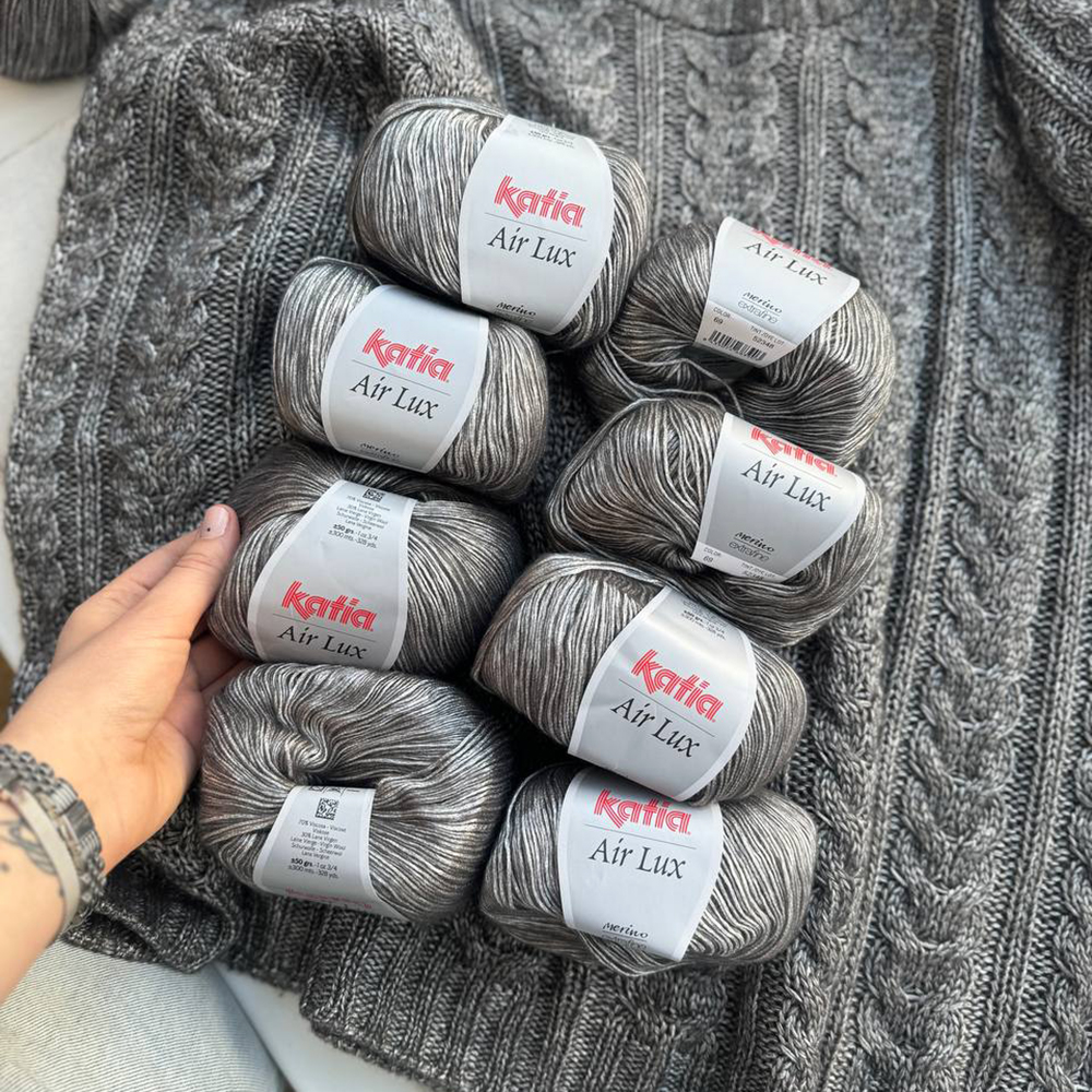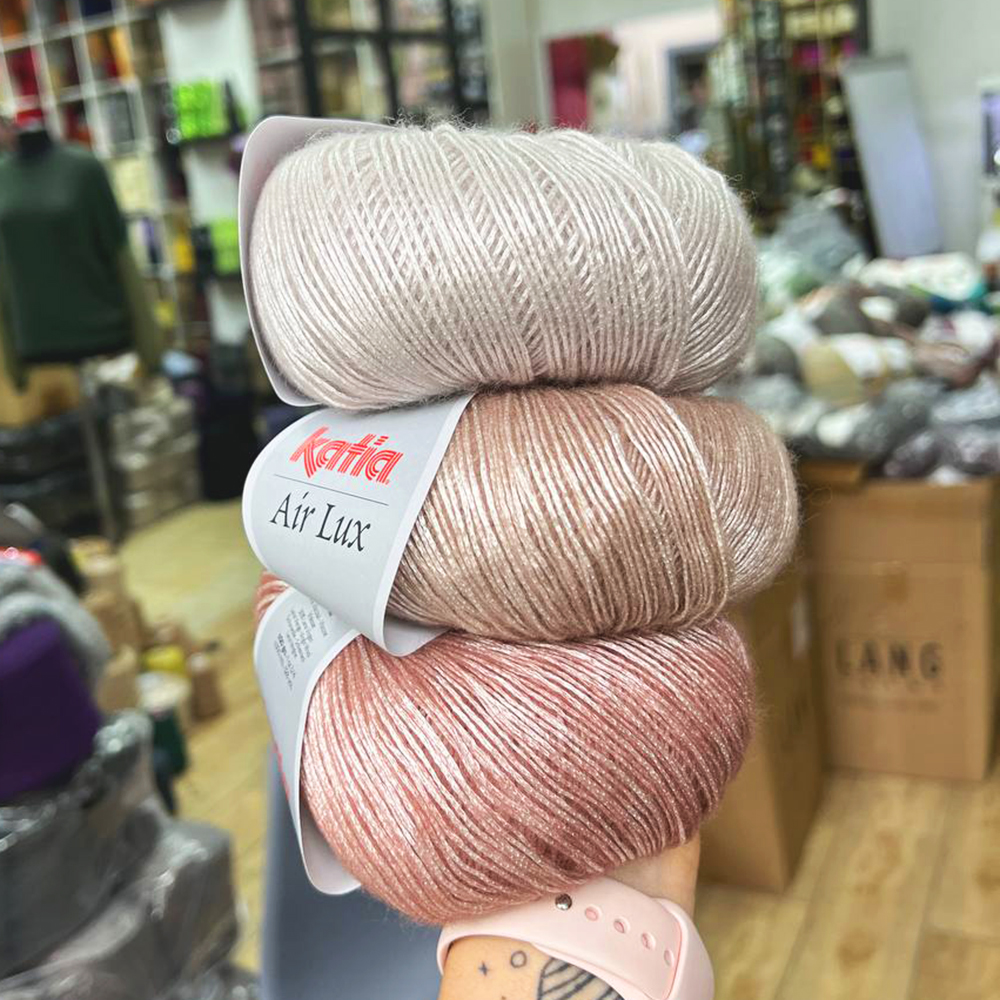 Вискозный шнур, заполненный вспушенным мериносом, вот что из себя представляет пряжа Air Lux. Активный эффект металлика абсолютно по-разному смотрится в мотке и в готовом изделии, а точнее переходит в деликатное мерцание.