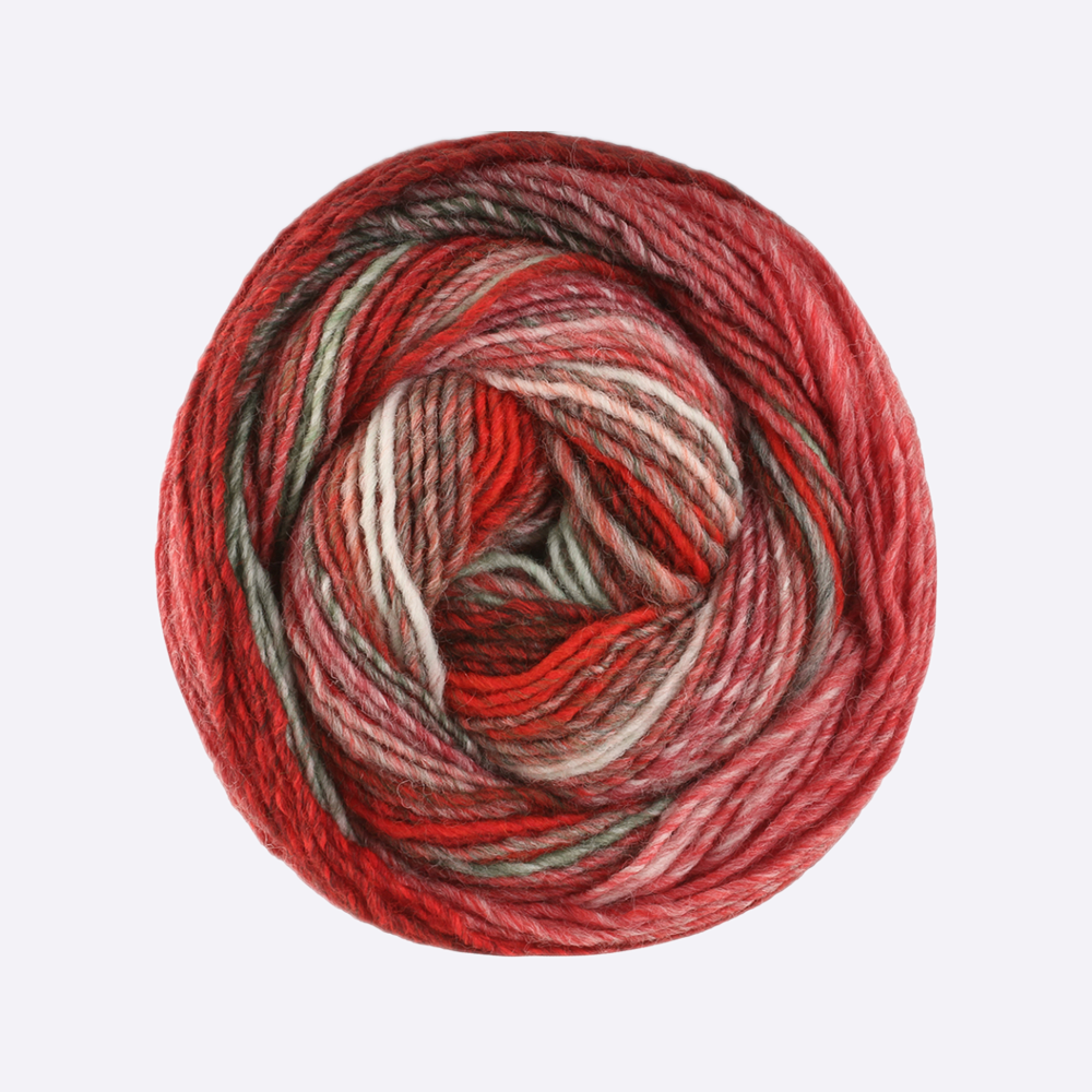Пряжа сочетает в себе мягкий меринос ровничного типа с добавлением Па, принося тепло и праздник в ваше творение. Сочные секционные оттенки этой пряжи создают потрясающие градиенты, которые укладываются в полосы разной ширины, предлагая визуальное разнообразие. Каждый оттенок тщательно подобран для создания рождественской атмосферы.