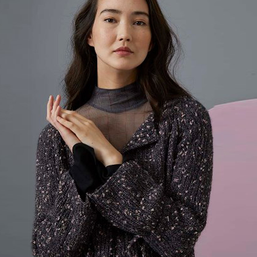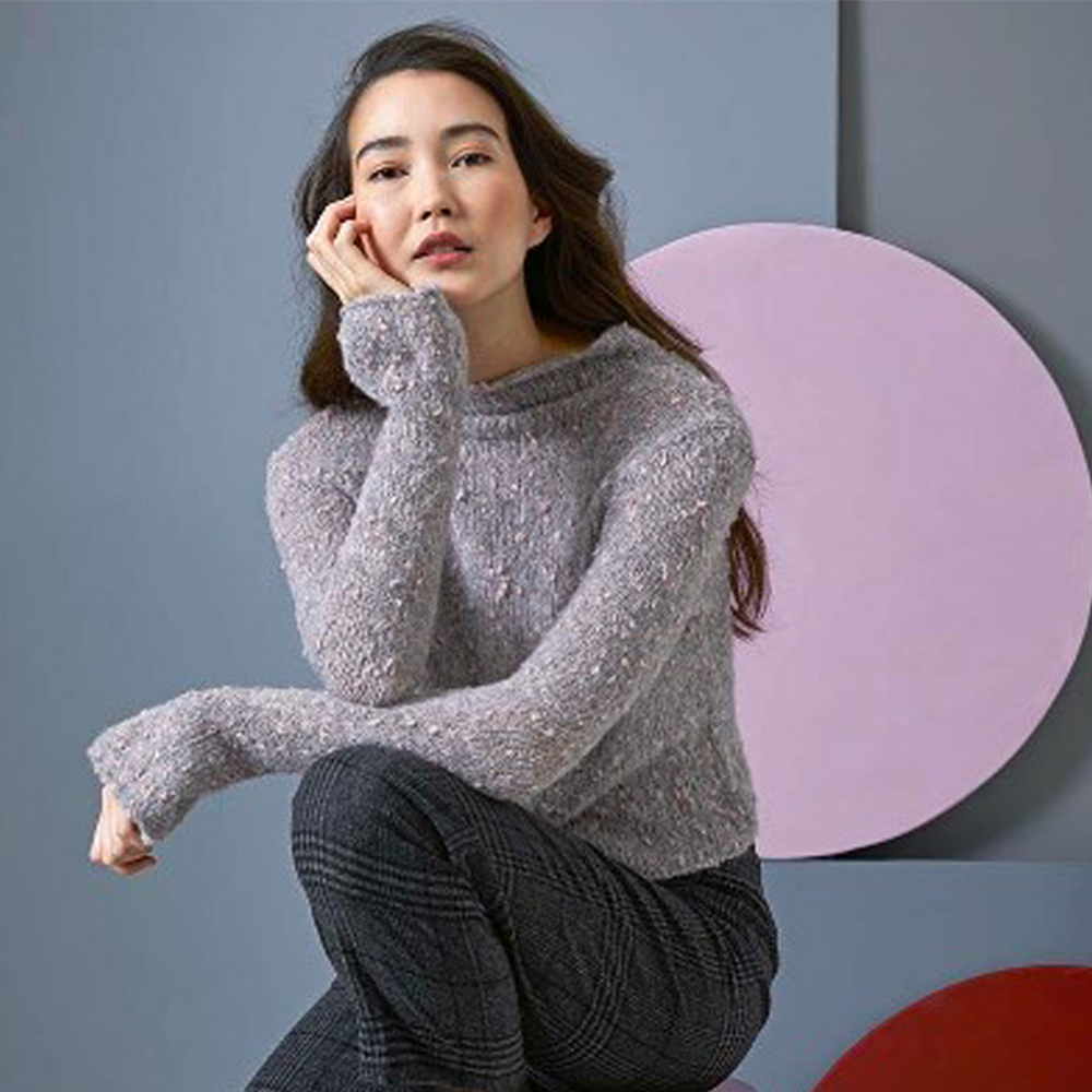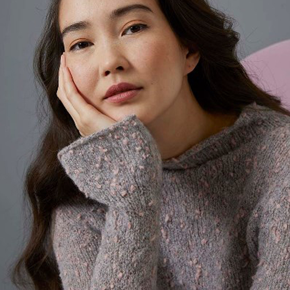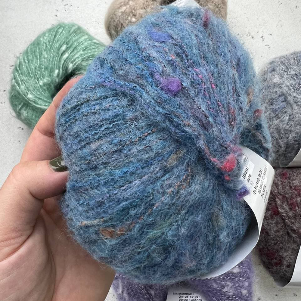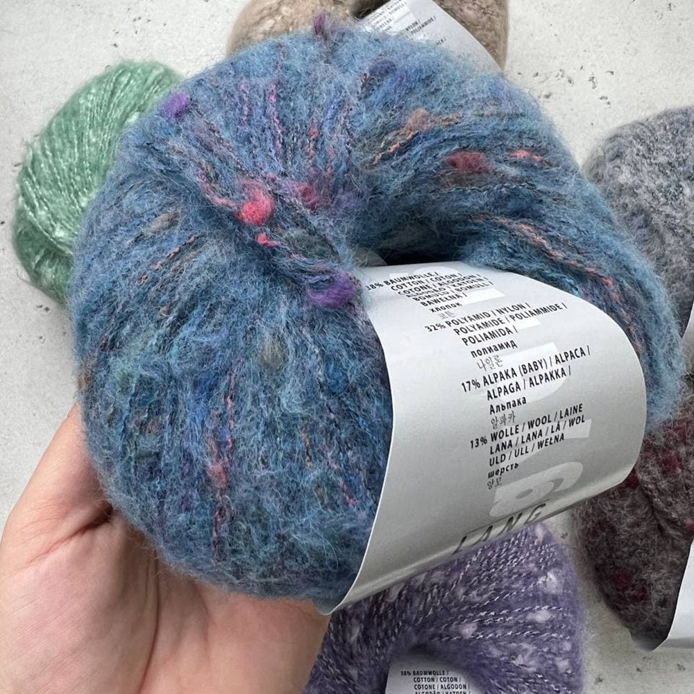 Пряжа с эффектной структурой - смесь хлопка, шерсти и альпаки. Гармоничные натуральные цвета, встречающиеся в природе - экрю и антрацит составляют основу нити, дополненную розовым, оливковым и синим оттенками в разной интенсивности.