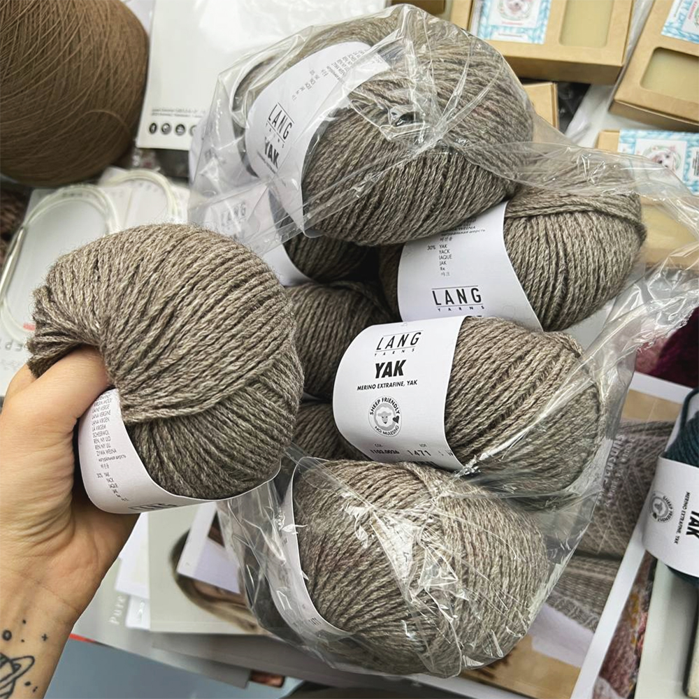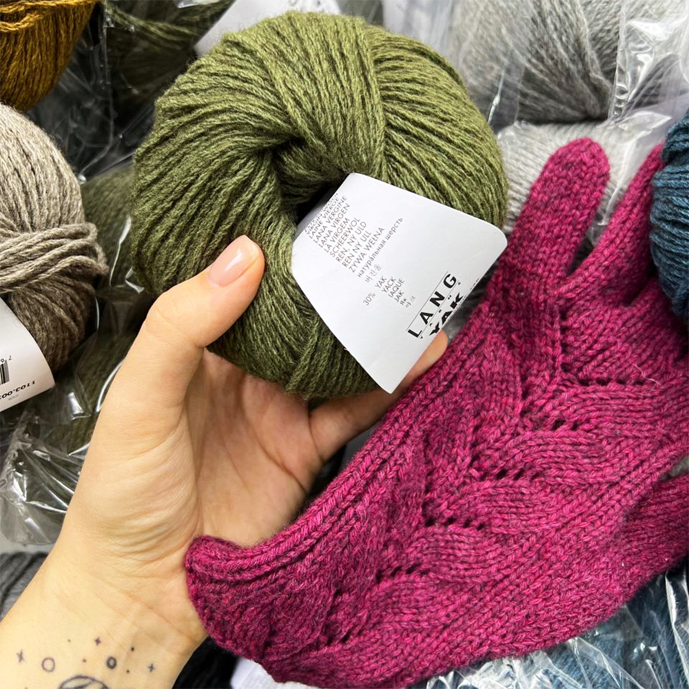 Из Lang Yak можно вязать теплые изделия для всей семьи, пальто и кардиганы, жилеты и куртки, свитера, шарфы, снуды и шапки. Хорошо смотрятся сложные узоры, лицевая и изнаночная гладь, араны и косы. Рекомендованы спицы: 4,5 - 5 мм, крючок - 4 мм.