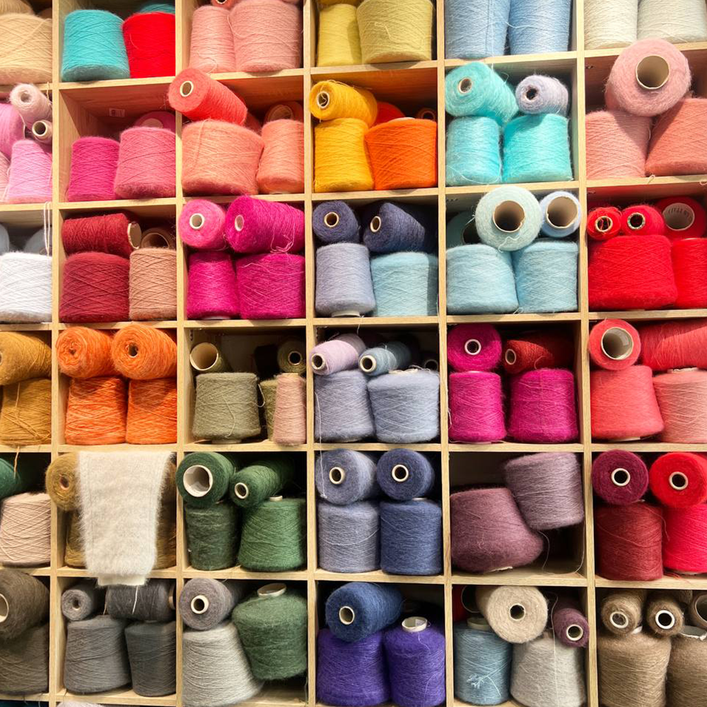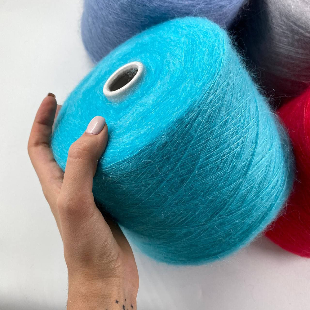 Во всей Италии сейчас нет столько кидмохера, сколько изготовили и окрасили специально по нашему заказу. В основе Silkid — суперкидмохер, самый тонкий и мягкий пух с первой стрижки мохеровых козлят. Он собран на нить шёлка малберри — самого гладкого и прочного сорта.