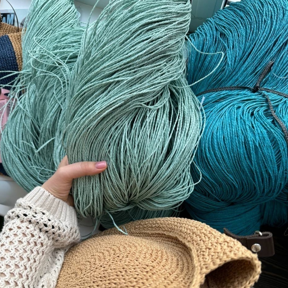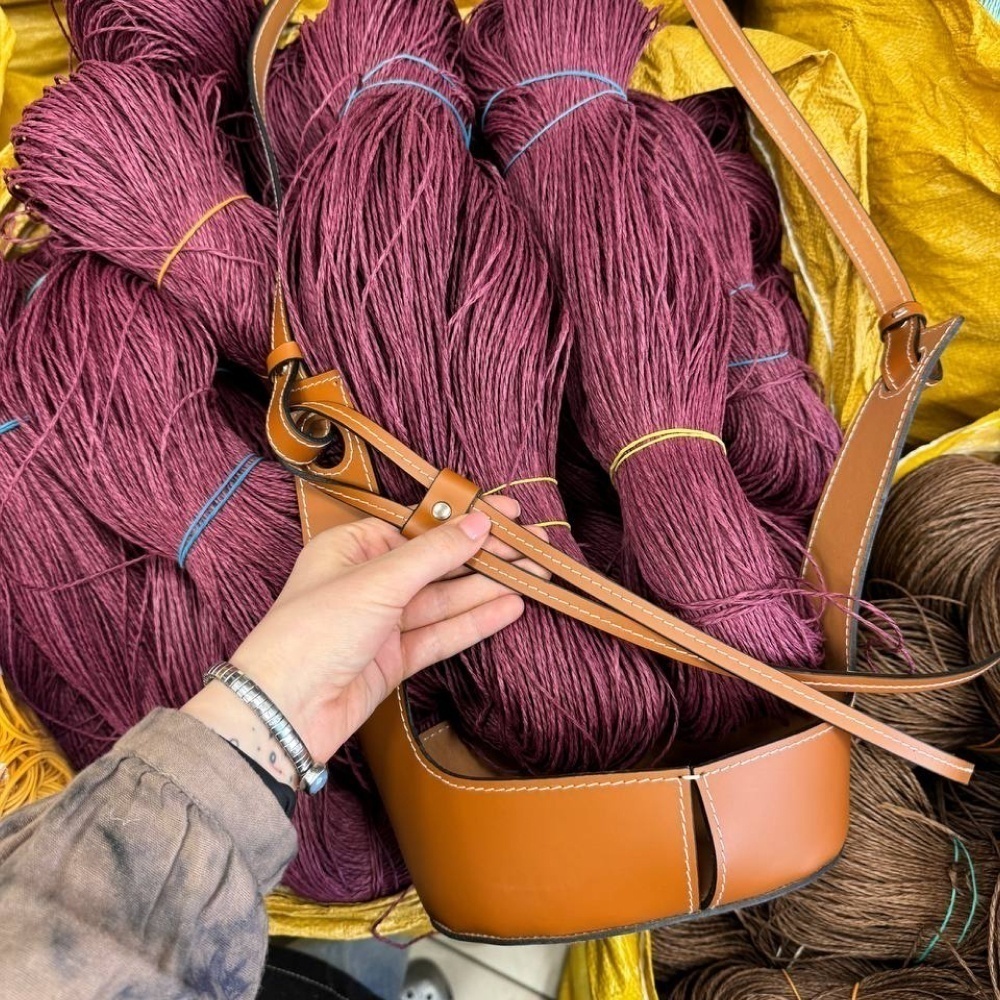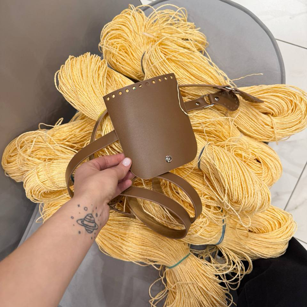 Рафия, напротив, имеет в листьях натуральную смолу, которая увеличивает ее долговечность. Также она делает каждую прядь гибкой и податливой, удивительно эластичной и слегка водонепроницаемой, предотвращая ее растрескивание и ломкость с течением времени. Таким образом, рафия современный, прочный, долговечный, податливый, гибкий и легко окрашиваемый продукт. Это позволяет мастерицам проявлять творческий подход к дизайну, технике вязания и производить аксессуары, которые универсальны (свертываются и упаковываются) и, что наиболее важно, модны.