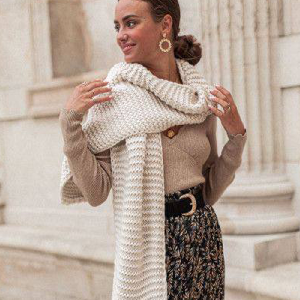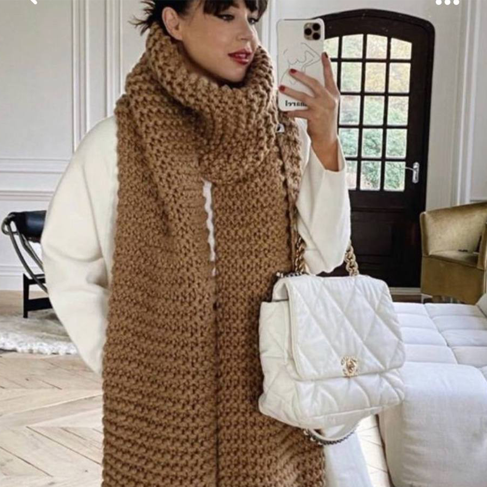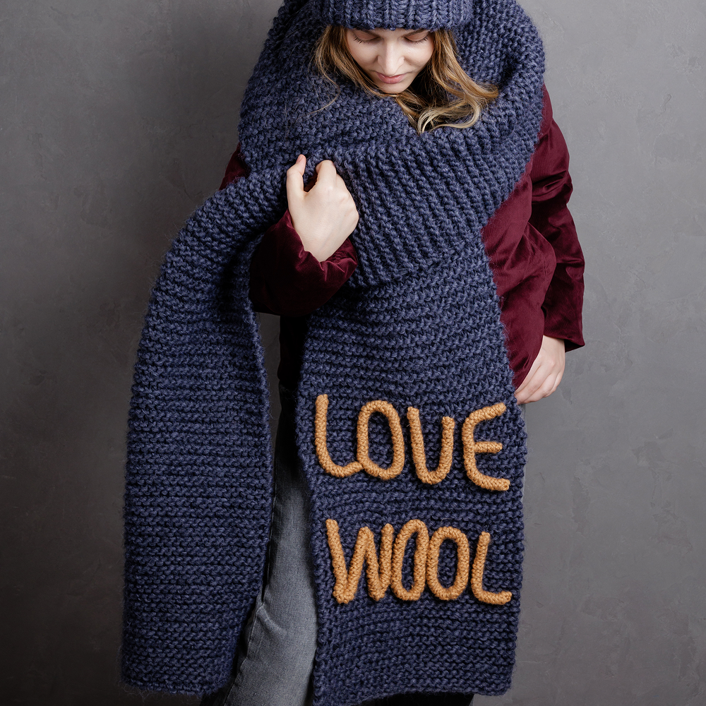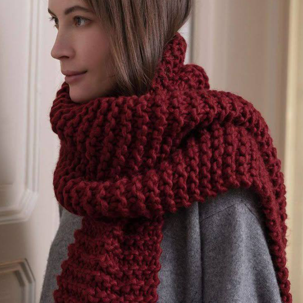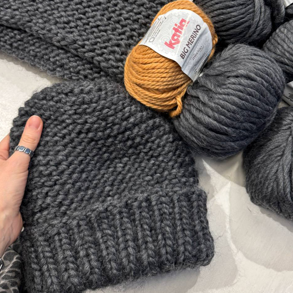 Расход: на шапку с отворотом – 2 мотка, на шарф – 10 мотков, на джемпер 46-48 размера – 10-12 мотков.