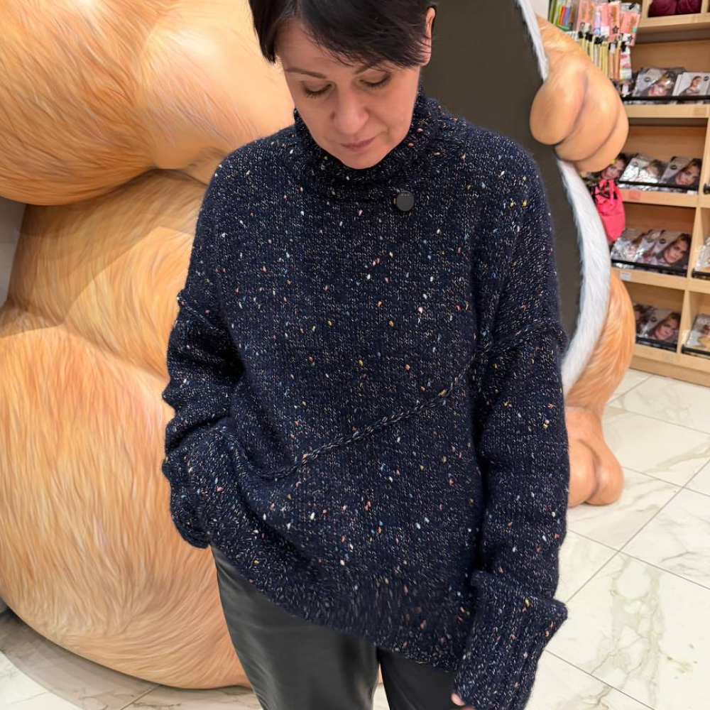 Оформление свитера декоративными швами наружу – особенность данной модели!