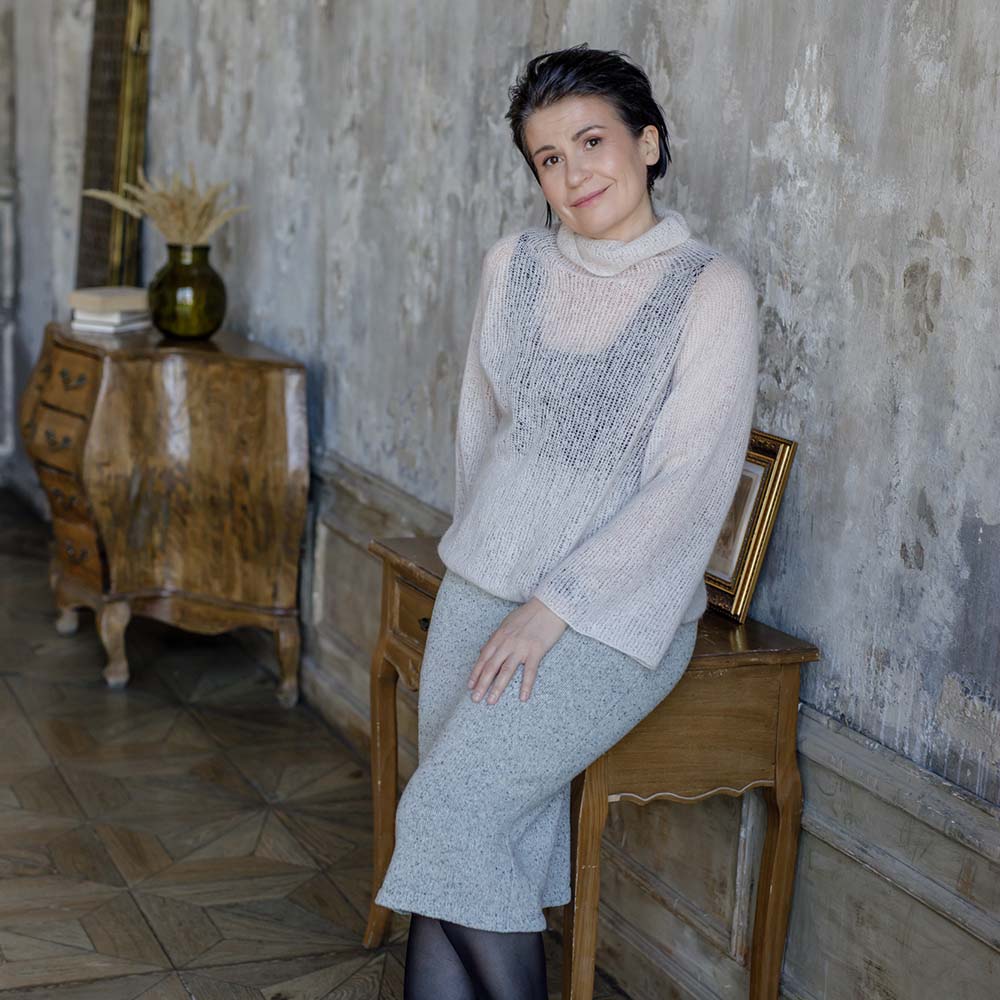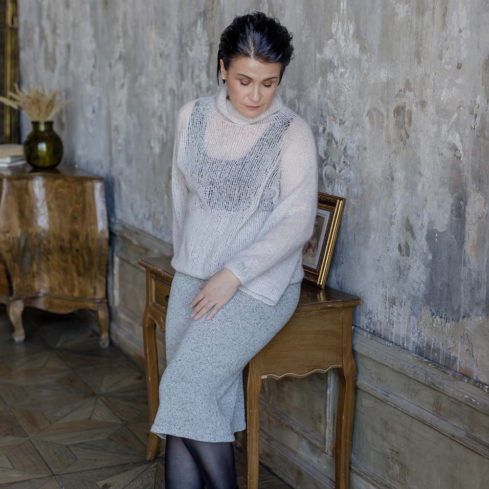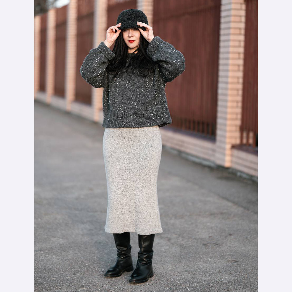 Для юбки выбирайте стабильную пряжу, натуральную, с хорошей долей стабилизирующего ПА. Наличие мериноса обязательно