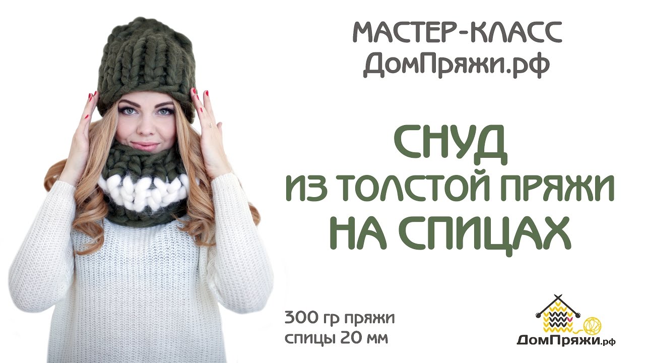 Мастер-класс как вязать теплый снуд из шерсти мериноса на спицах 20 мм...